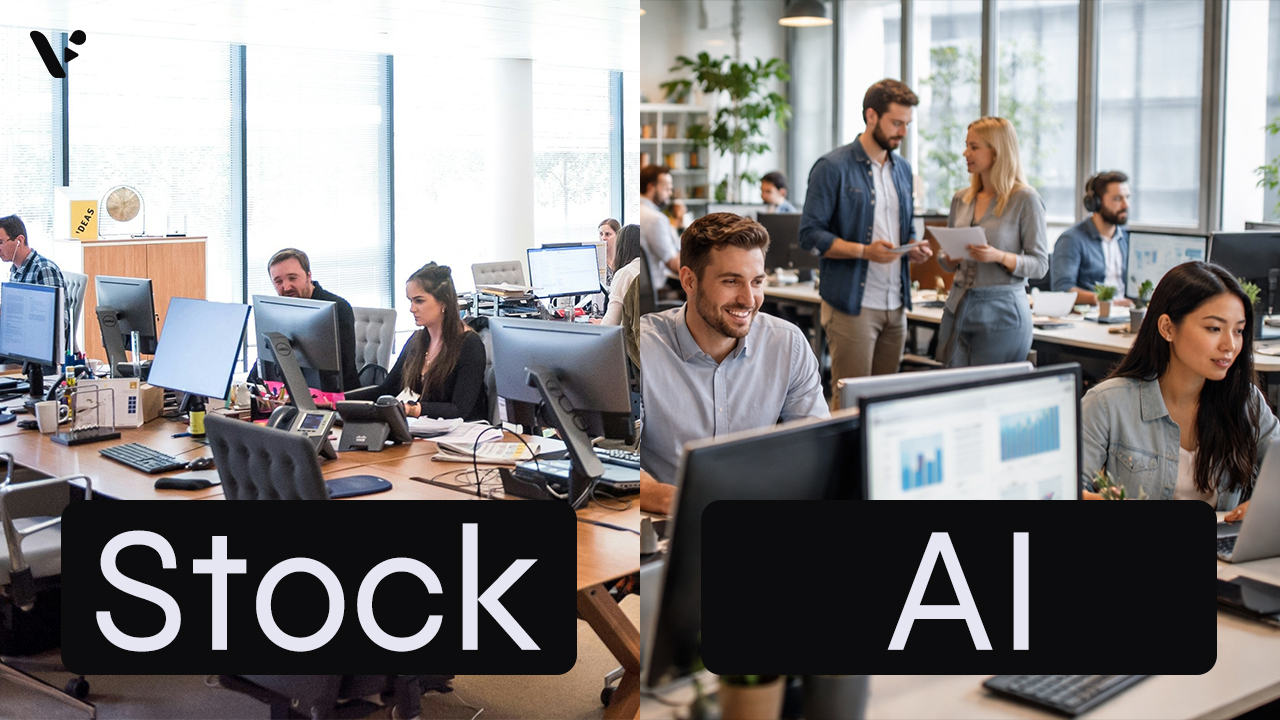 AI-generated video clips give you custom visuals on demand, while stock footage gives you real-world footage with predictable realism and licensing terms. For common scenes like office conversations, city flyovers, transit movement, and laptop-in-a-cafe b-roll, stock wins on instant believability and AI wins on specificity, brand fit, and speed to something unique. The best approach usually mixes both: you use stock for broad, “this is a real place” shots and AI clips for moments where you need the exact people, props, environment, or vibe. If you need the absolute highest realism and you can afford the time and budget, a bespoke shoot still sets the ceiling, but AI clips often hit the best cost-to-output ratio for teams that need to scale.