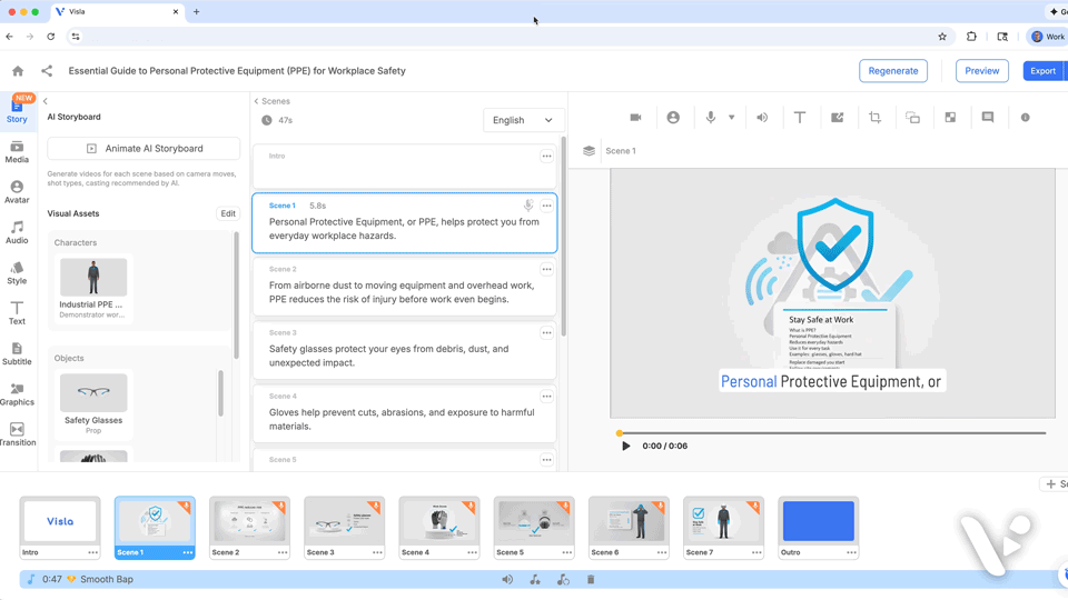 Then Visla blends characters and objects into each scene so the video feels like one world.