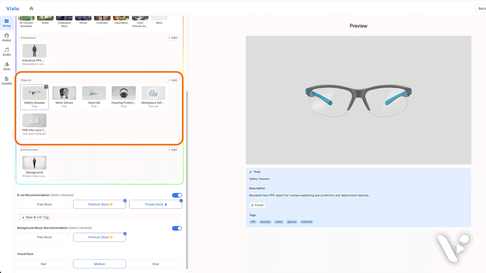 Again, these aren’t prompts. They’re descriptors that tell Visla what the object is and why it matters, so it shows up where it should.