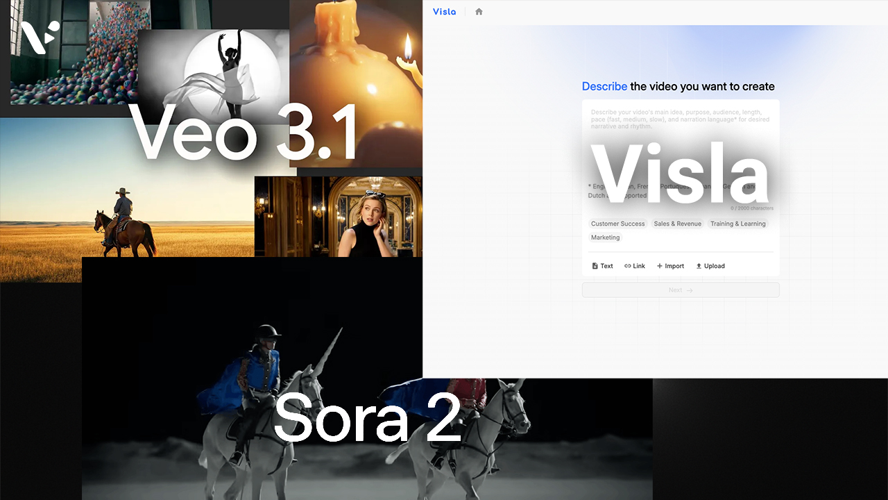 - Product launch video. Use Sora to create atmospheric openers and Veo to generate a hero shot of your product in an impossible environment. Pull both into Visla. Add script, subtitles, on‑brand lower thirds, and a cloned executive voice for narration. Share for review, resolve comments, export in 16:9 and 9:16.